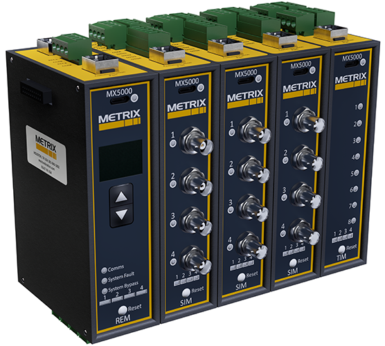 The MX5000 is a vibration monitoring and protection system that is designed for new installations and to make rack replacement easy and affordable. Its modular design allows a user to take advantage of each module’s standalone capacity, with the ability to combine systems with up to 7 modules and 24 vibration channels.